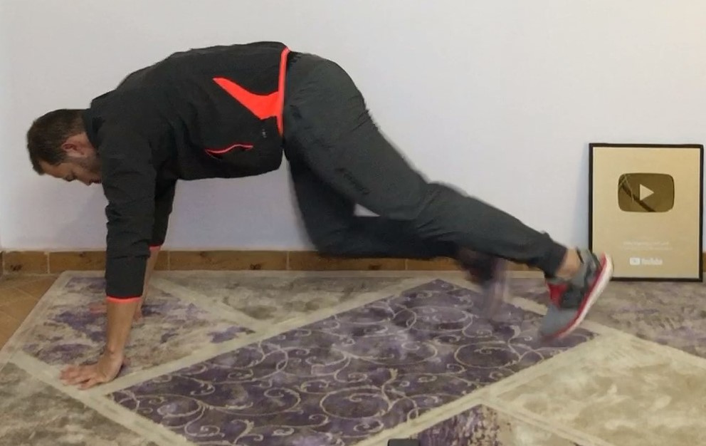 لمن يعرف لعبة القتال المشهورة الufc فا هناك حركة حيث يقوم الشخص بمسك رأس شخص اخر وضربة بركبتة فى وجهه لا احد يفعل ذلك , نحن لن نحتاج لشخص لضربة ولكن سنضرب الهواء ههههههه , هذا التمرين رائع لحرق دهون البطن السفلية و دهون الخصر و اسفل الظهر , لا تنسي ان هذا التمرين تقوم بالتبادل على الجهتين مره اليدين مع الرجل الشمال و العكس.
